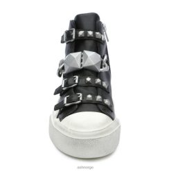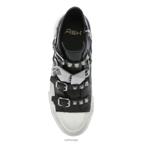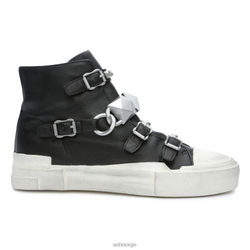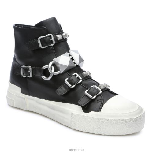 en joggesko i glatt skinn gir moto-vibes med overdimensjonerte nagler og dekorative spenner i en retro-high-top-silhuett.